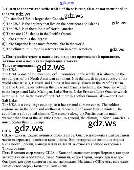 Готовый и полный ответ к Test 1 Unit 1. Visiting the USA - Английскому языку 8 класс Афанасьева Рабочая тетрадь Новый курс ФГОС