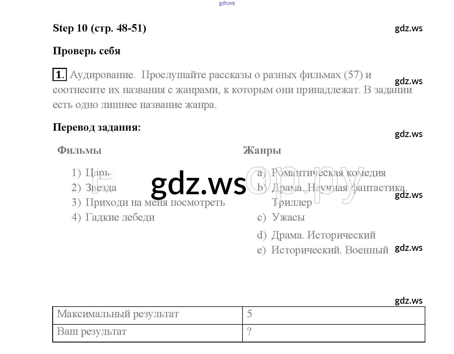Готовый ответ Step 10 Unit 3. Performing arts: cinema - Английскому языку 8 класс Афанасьева Учебник Rainbow ФГОС