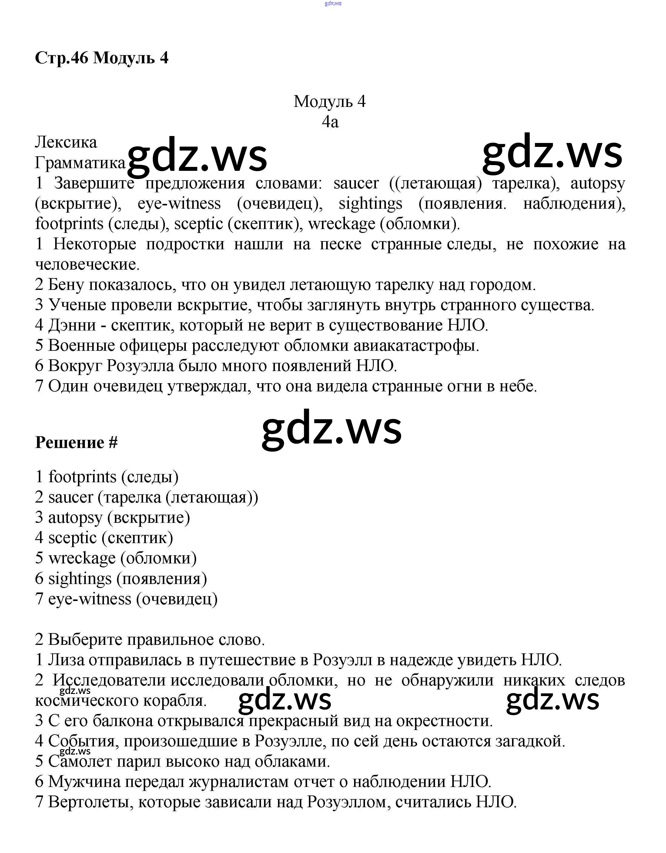 Готовый и полный ответ к Module 4 - Английскому языку 8 класс Баранова Рабочая тетрадь Углубленный уровень Starlight ФГОС