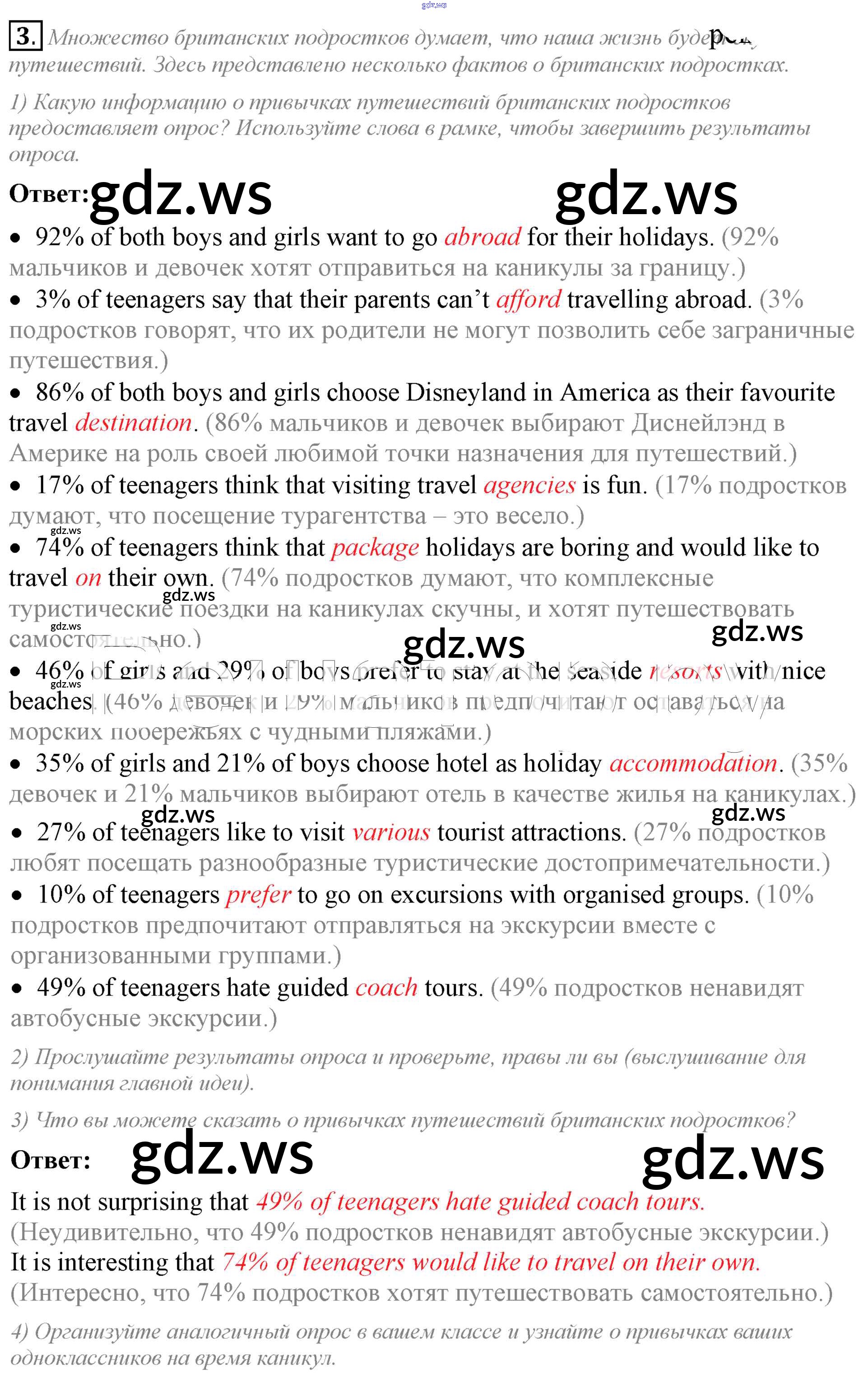 Готовый и полный ответ к lesson 1 Unit 3. Do you like travelling? - Английскому языку 8 класс Кузовлев Учебник ФГОС