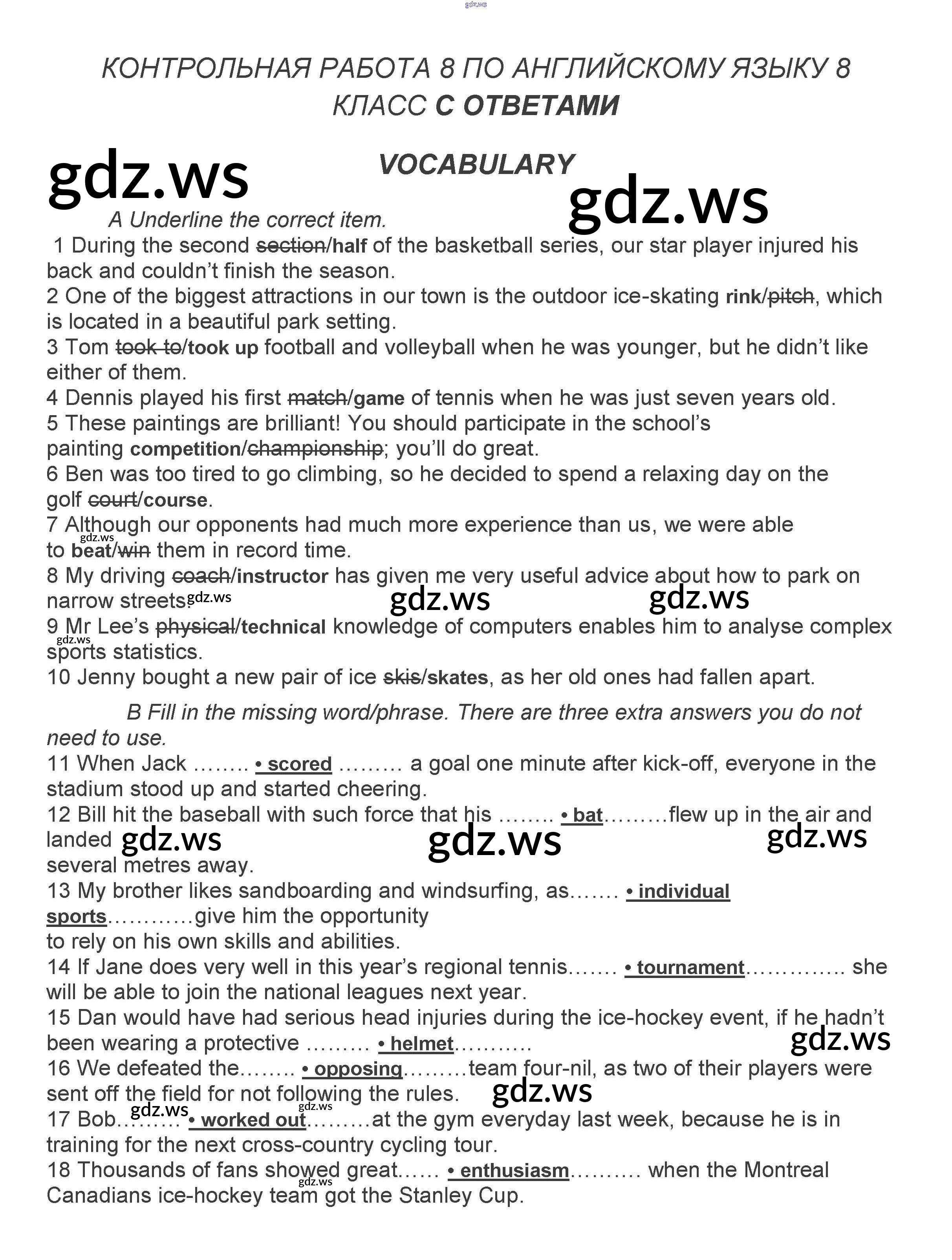 Готовый и полный ответ к Контрольная работа 8 - Английскому языку 8 класс Ваулина Контрольные задания Spotlight ФГОС