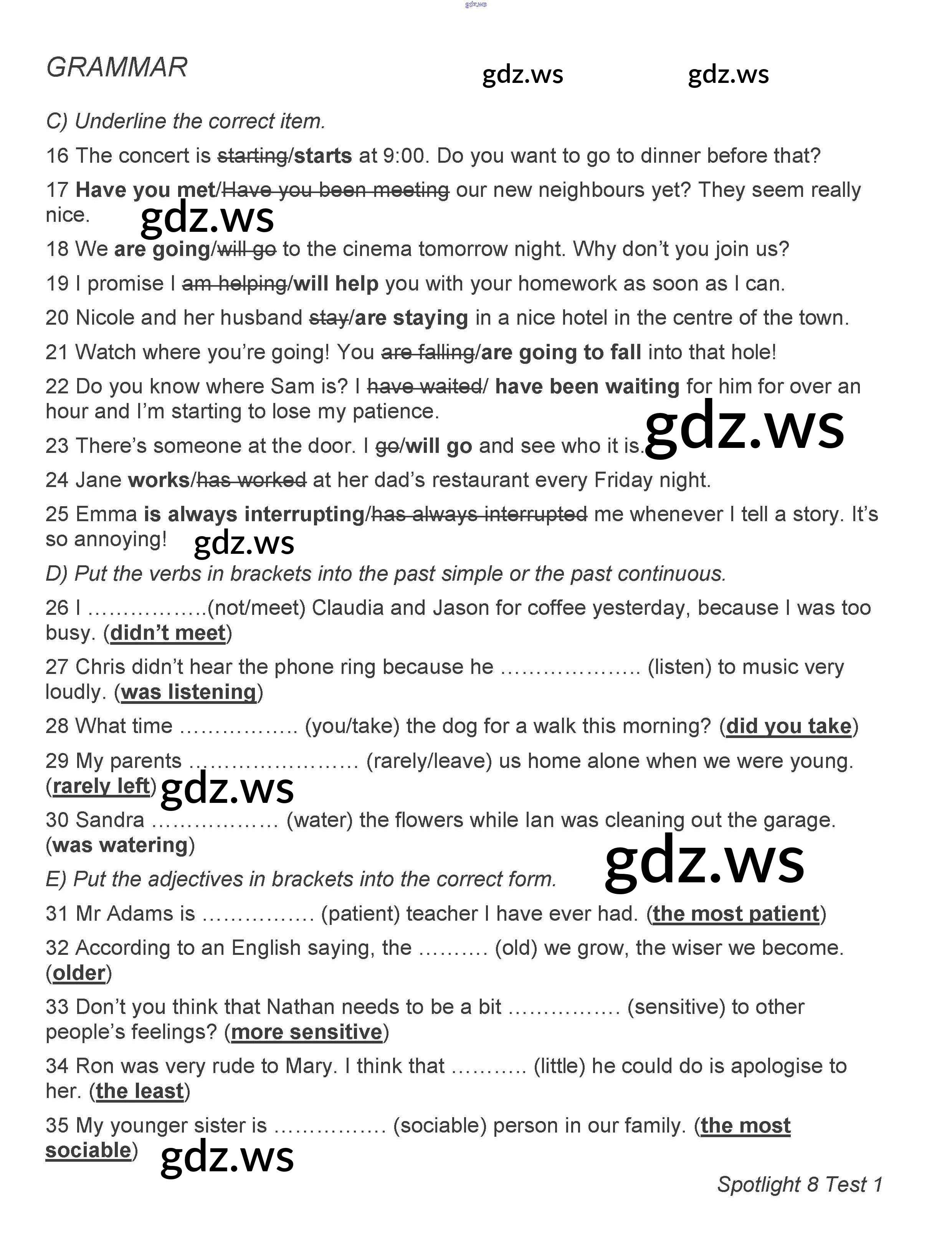Готовый и полный ответ к Контрольная работа 1 - Английскому языку 8 класс Ваулина Контрольные задания Spotlight ФГОС