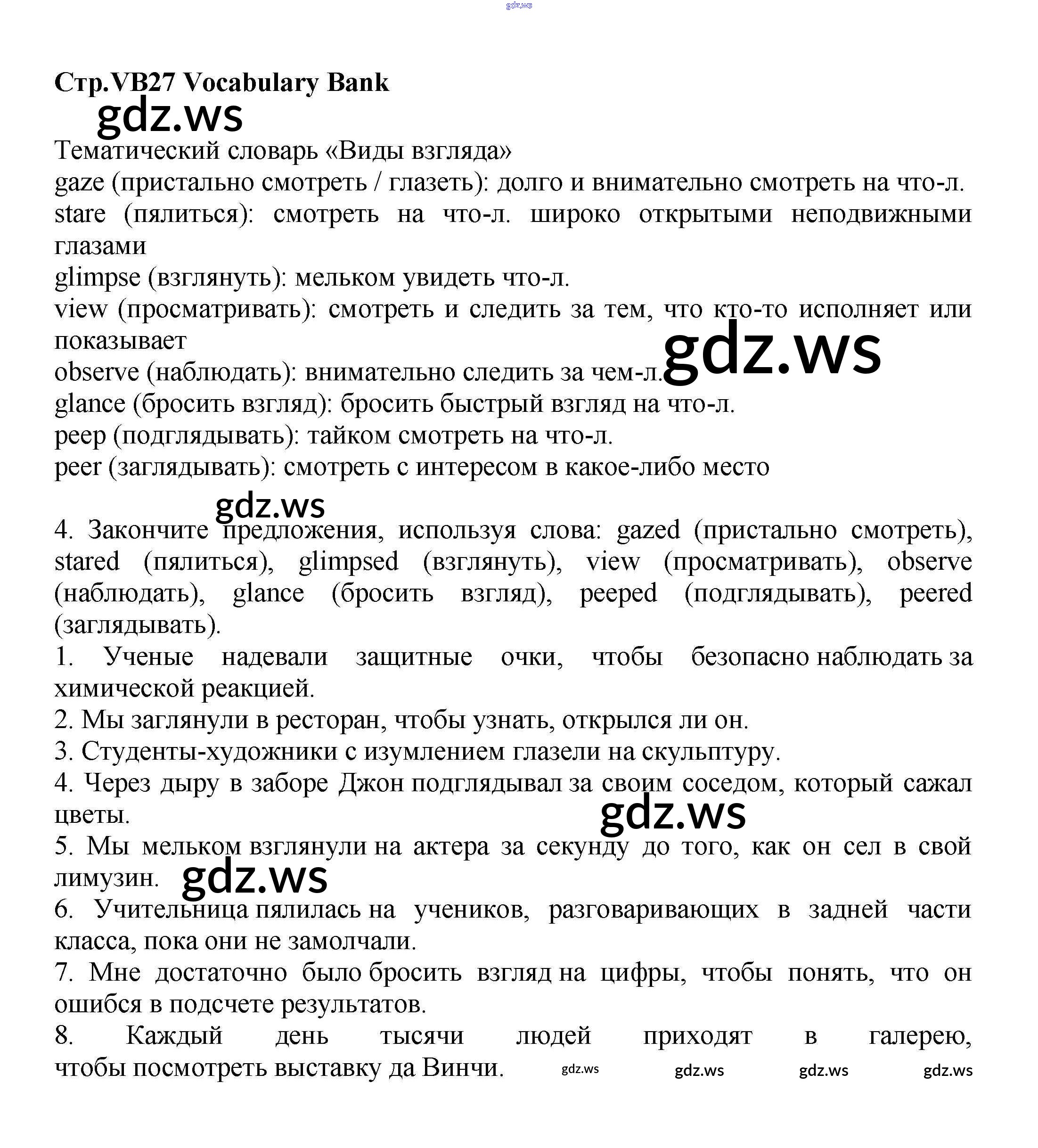 Готовый и полный ответ к Vocabulary Bank - Английскому языку 9 класс Баранова Учебник Углубленный уровень Starlight ФГОС