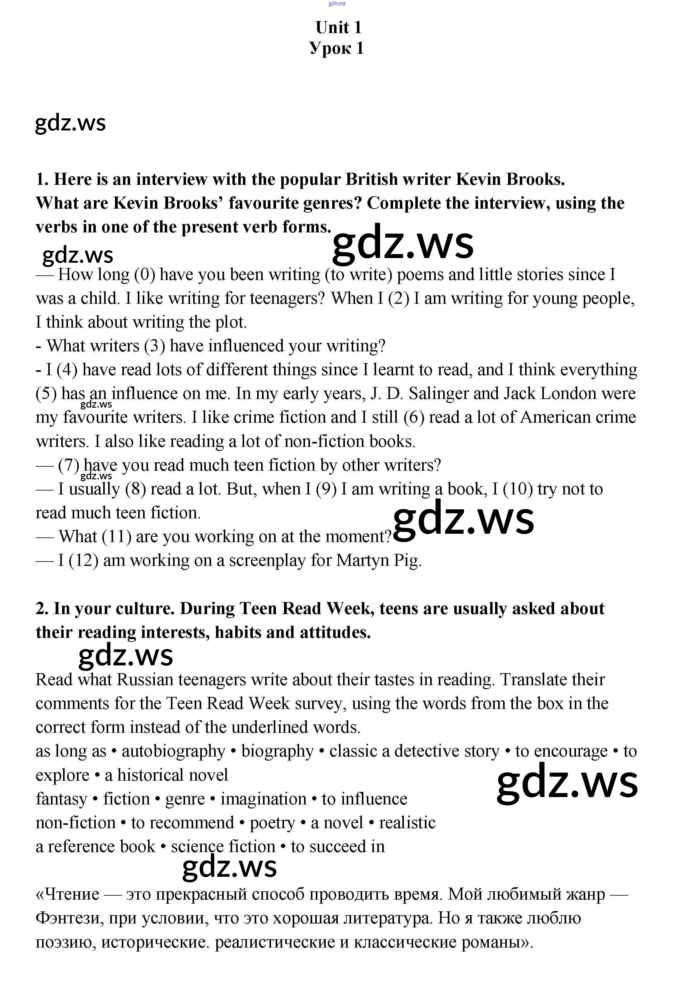 Готовый ответ Урок 1 Unit 1. Reading...? Why not? - Английскому языку 9 класс Кузовлев Рабочая тетрадь УМК ФГОС