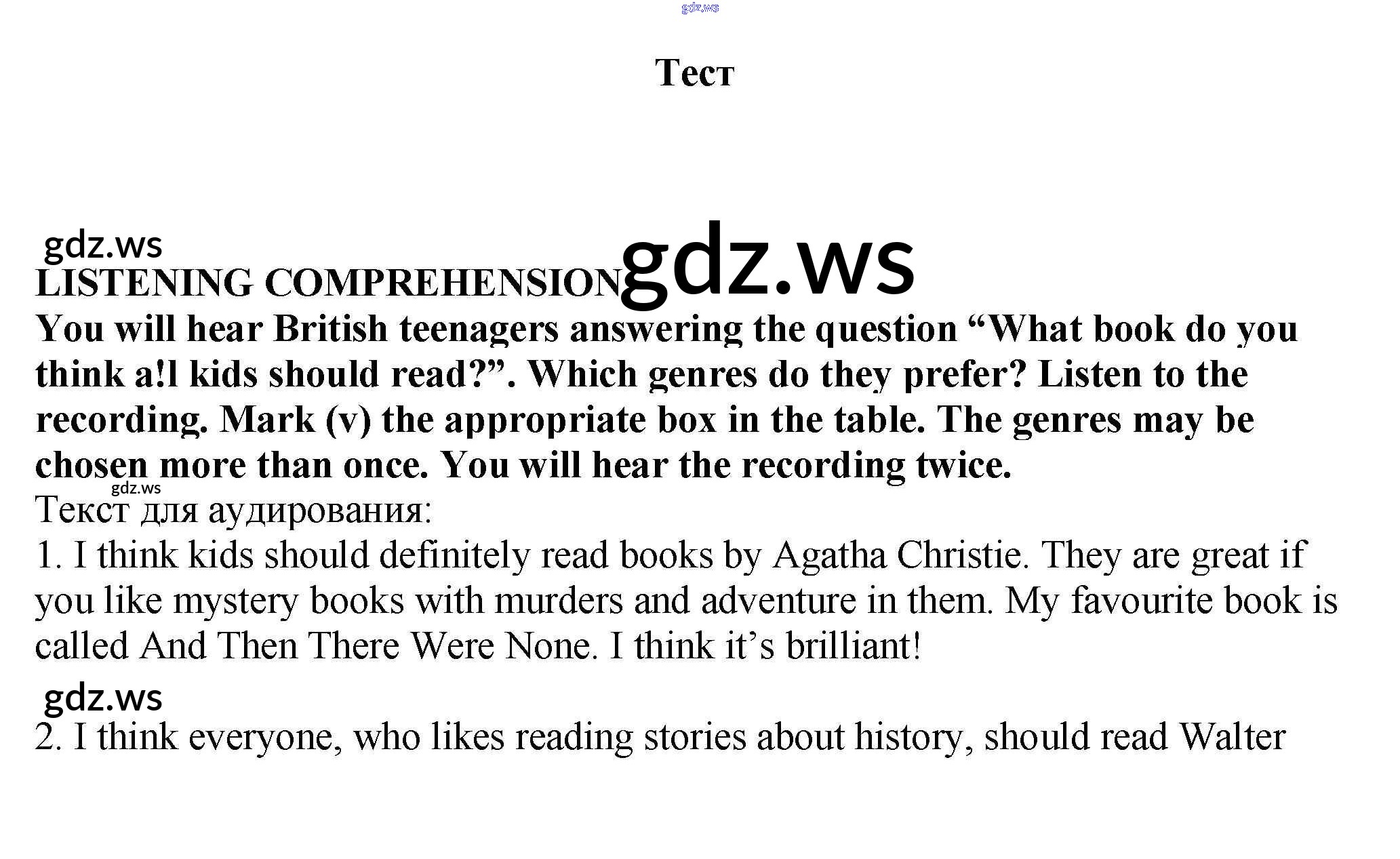 Готовый и полный ответ к Test Unit 1. Reading...? Why not? - Английскому языку 9 класс Кузовлев Рабочая тетрадь УМК ФГОС