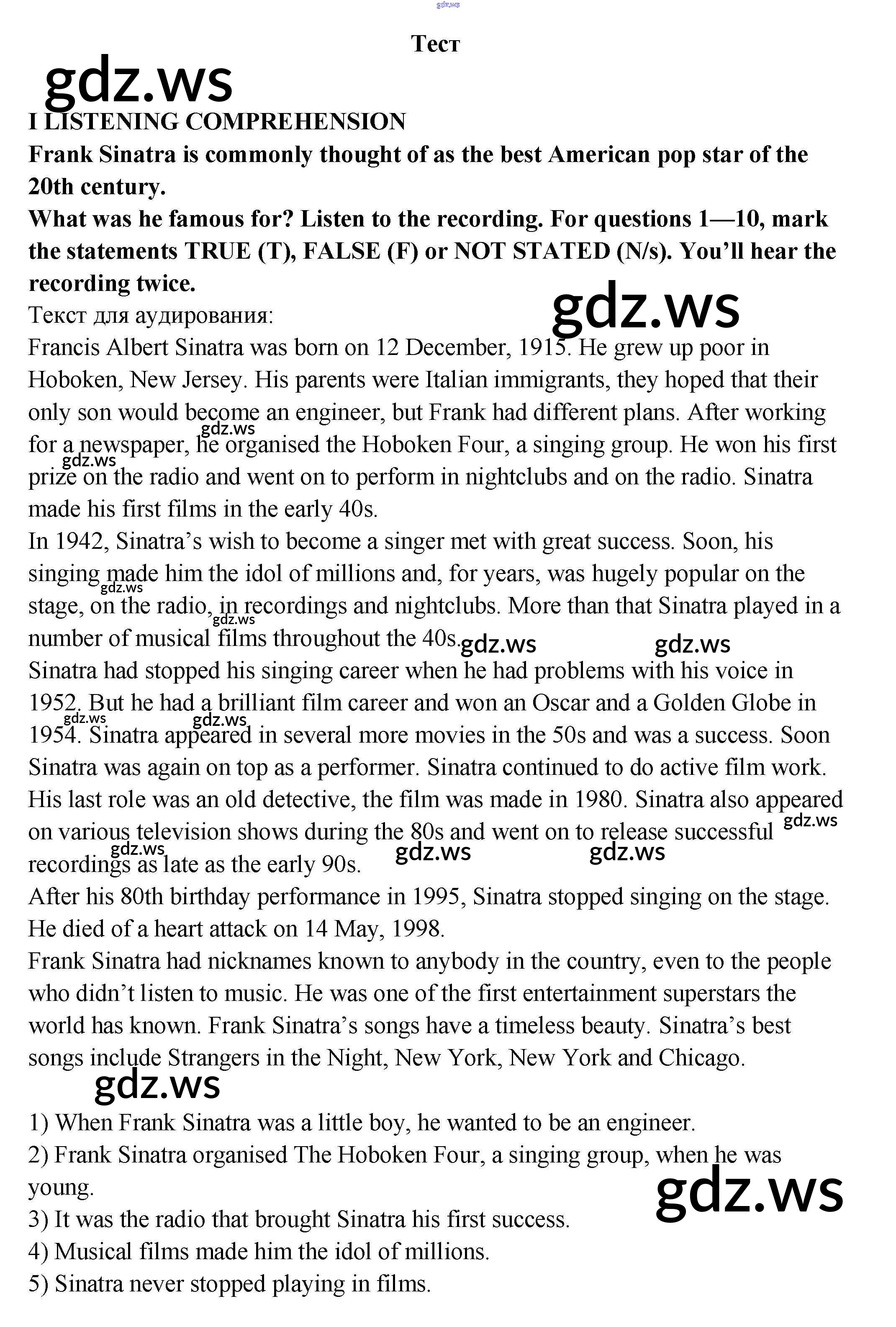 Готовый и полный ответ к Test Unit 2. Let the music begin.. - Английскому языку 9 класс Кузовлев Рабочая тетрадь УМК ФГОС
