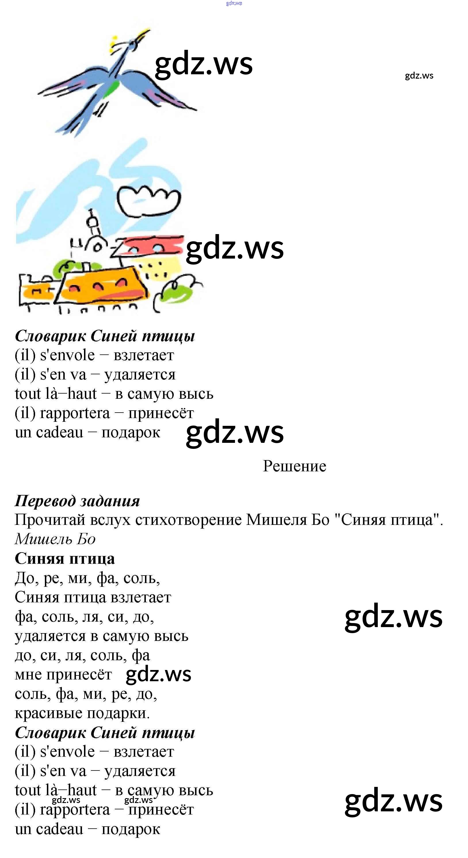Готовый и полный ответ к Страницы - Французскому языку 5 класс Береговская Учебник Синяя птица