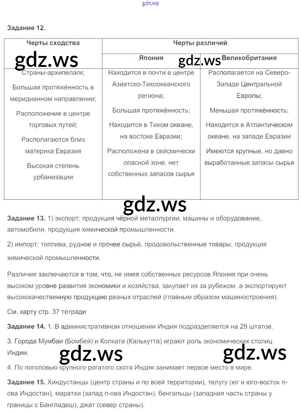 Готовый и полный ответ к Тема 7. Зарубежная Азия. Австралия (стр. 36-42) - Географии 11 класс Максаковский Рабочая тетрадь ФГОС