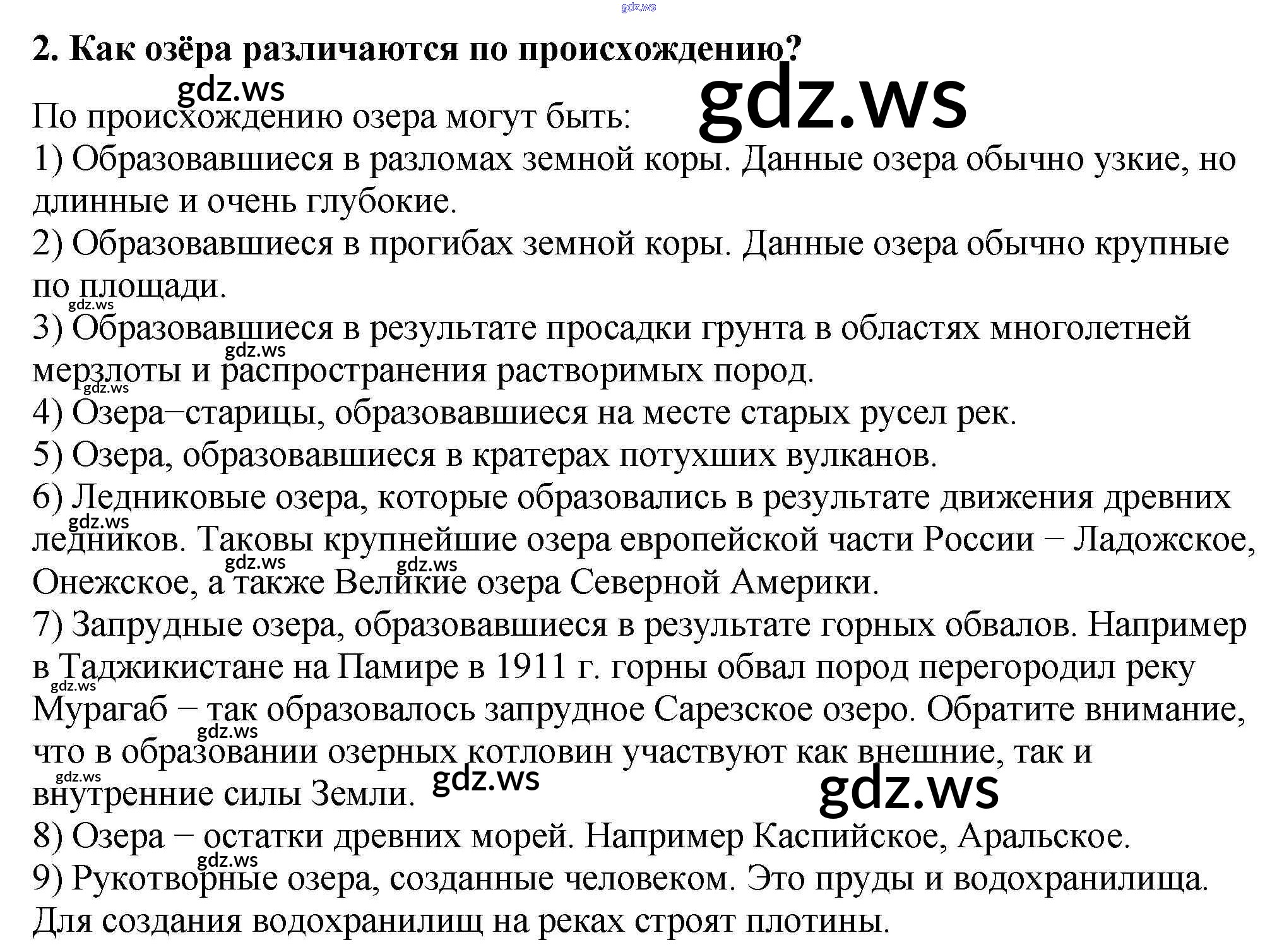 Готовый и полный ответ к §35. Озера и болота - Географии 5 класс Алексеев Учебник Полярная звезда ФГОС