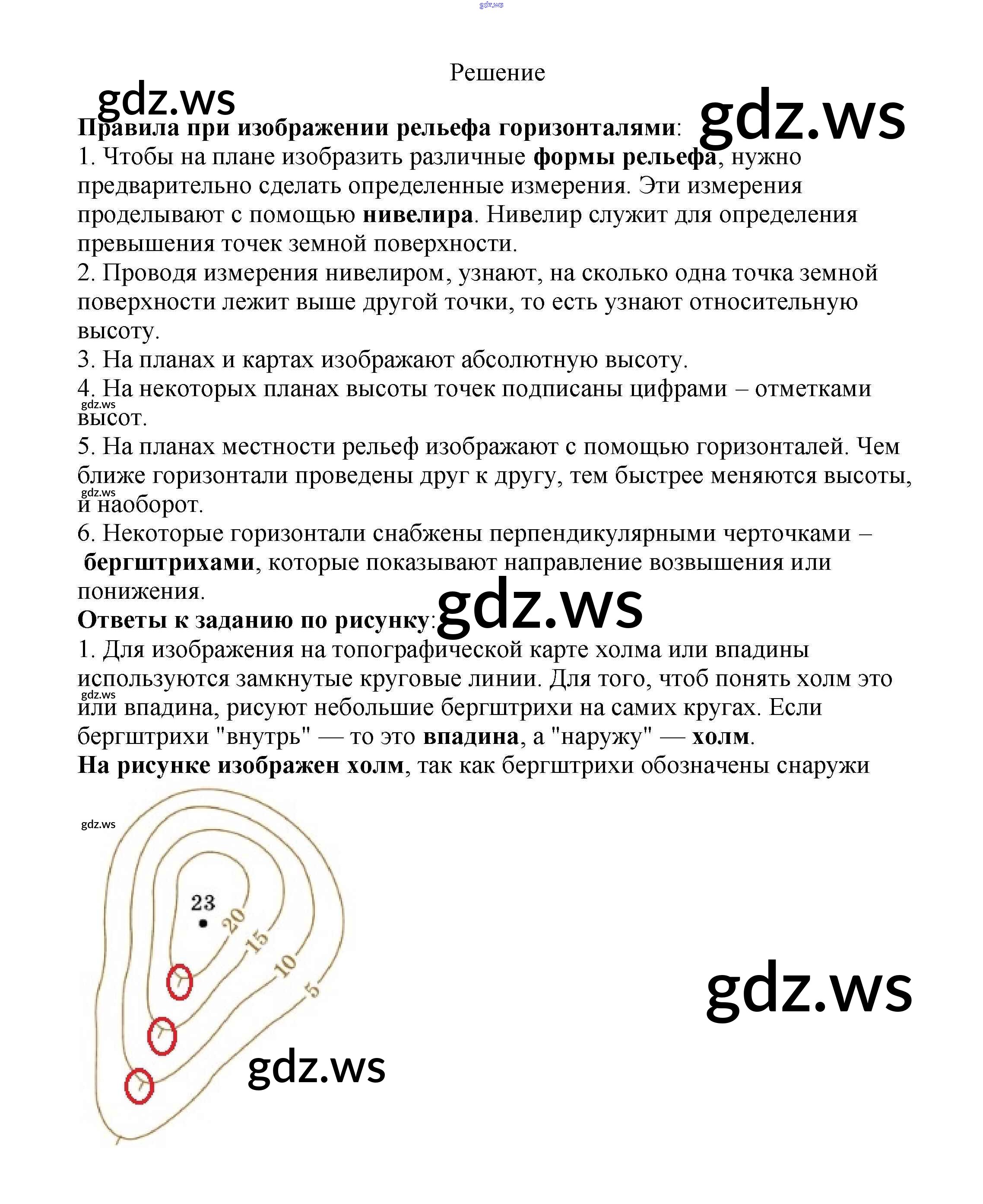 Готовый ответ Вопросы к рисункам §45. Изображение рельефа на планах местности и географических картах - Географии 6 класс Климанова Учебник Вертикаль ФГОС