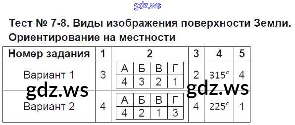 Тест-7-8. Виды изображения поверхности Земли