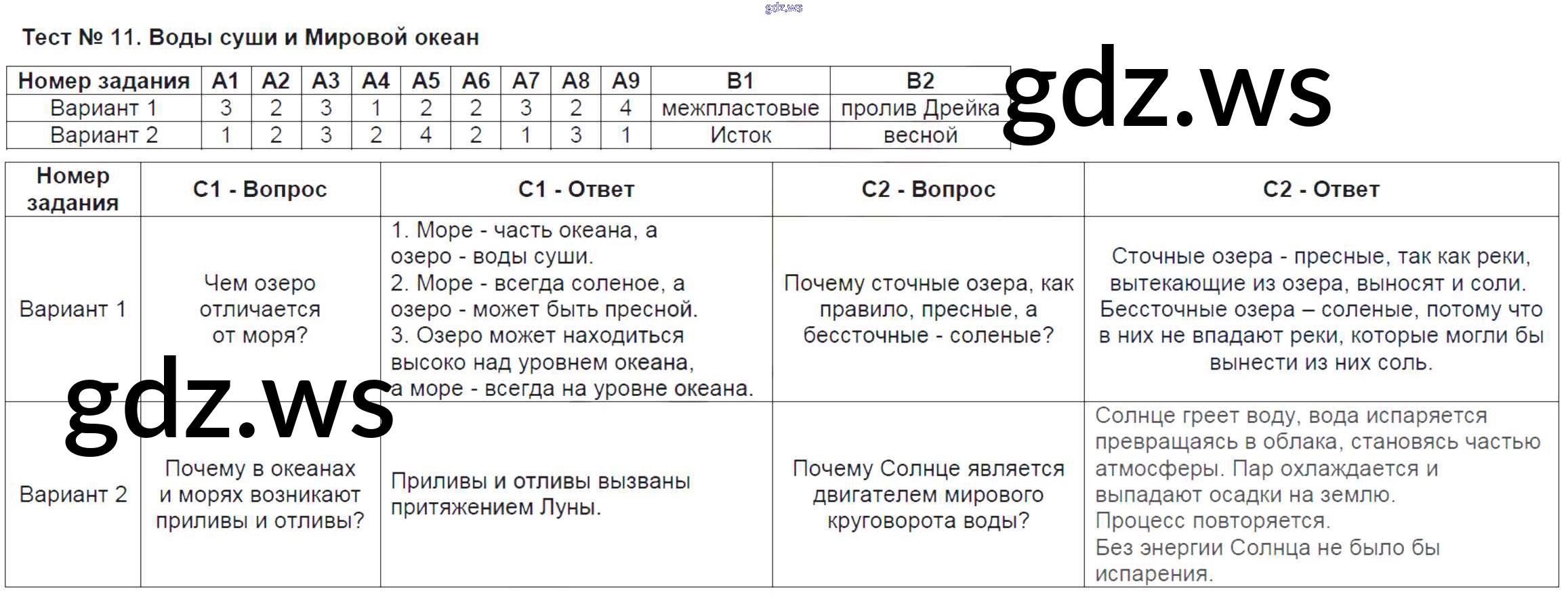 Тест-11. Воды суши и Мировой океан