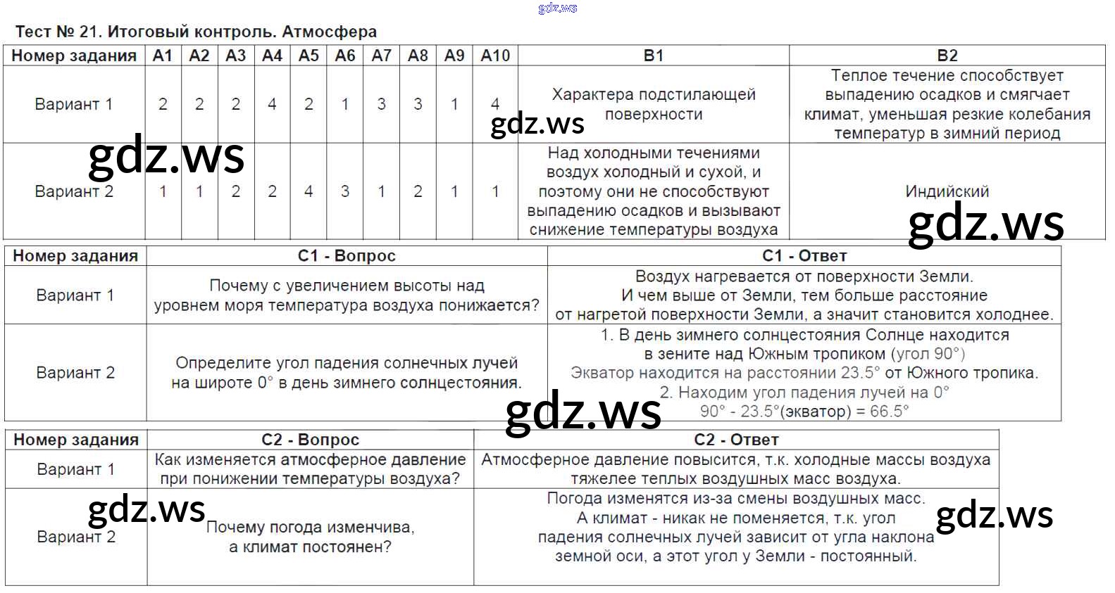 Тест-21. Итоговый контроль. Атмосфера