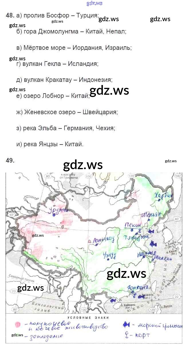 Готовый и полный ответ к Страницы - Географии 7 класс Душина Рабочая тетрадь УМК ФГОС