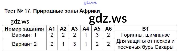 Готовый ответ Тесты - Географии 7 класс Жижина Контрольно-измерительные материалы (КИМ) ФГОС