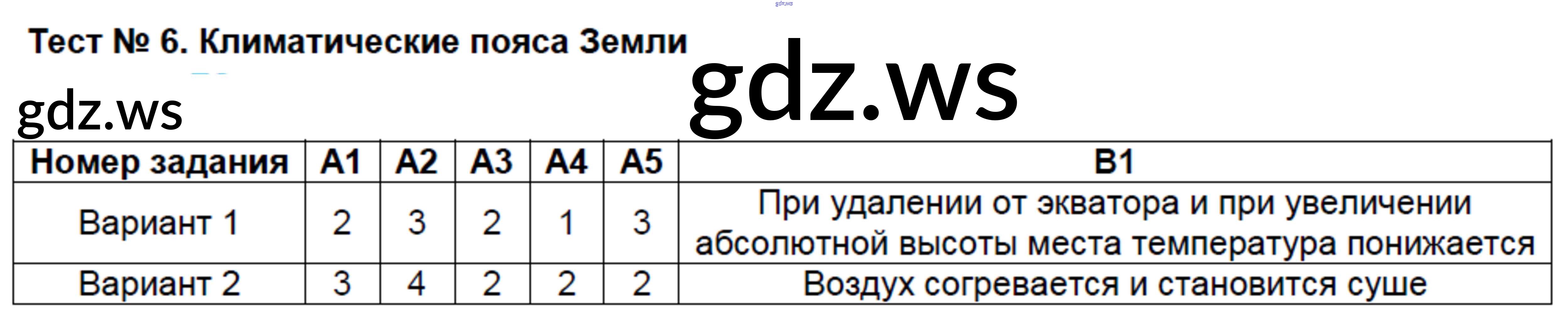 Готовый ответ Тесты - Географии 7 класс Жижина Контрольно-измерительные материалы (КИМ) ФГОС