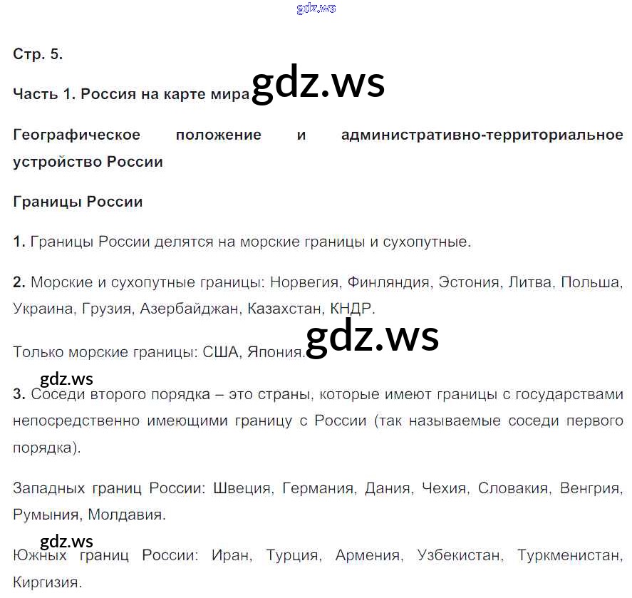 Готовый и полный ответ к Страницы - Географии 8 класс Баринова Рабочая тетрадь УМК ФГОС