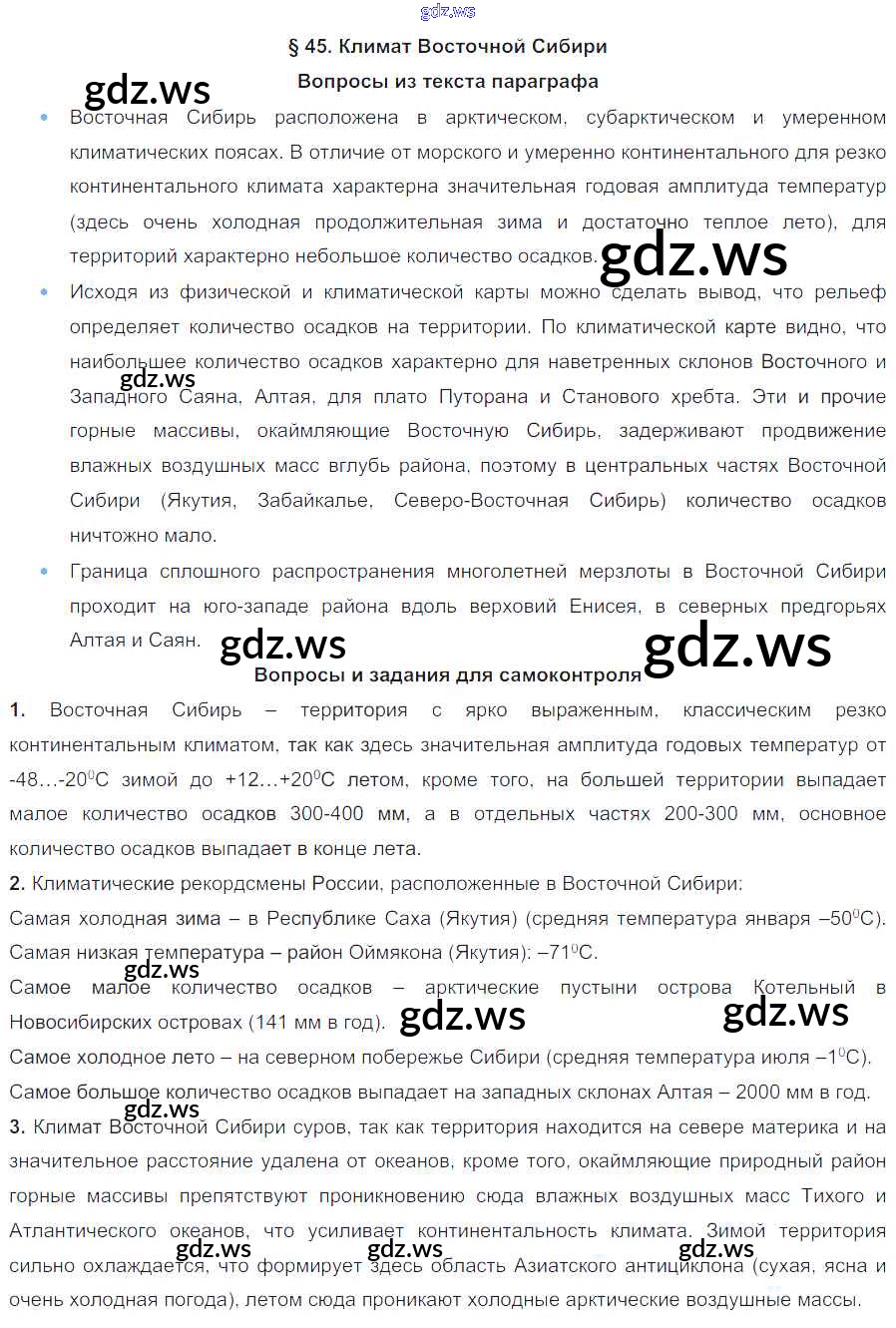 Готовый и полный ответ к Параграфы - Географии 8 класс Баринова Учебник УМК ФГОС