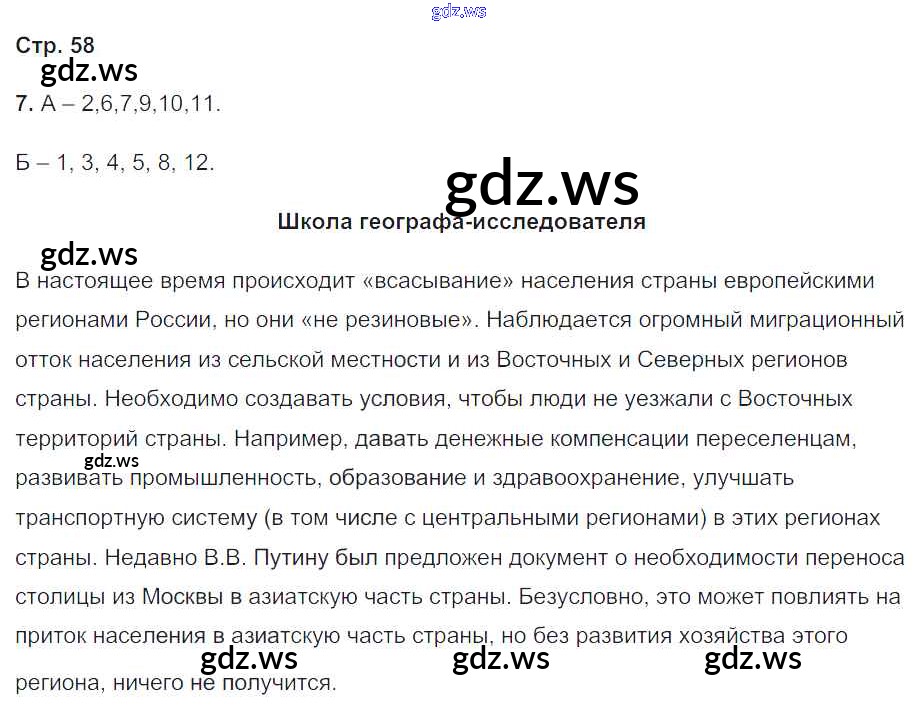 Готовый и полный ответ к Часть 2. Страницы - Географии 8 класс Пятунин Рабочая тетрадь Алгоритм успеха ФГОС