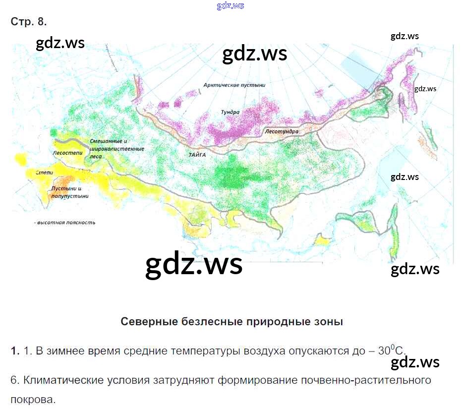 Готовый и полный ответ к Часть 2. Страницы - Географии 8 класс Пятунин Рабочая тетрадь Алгоритм успеха ФГОС