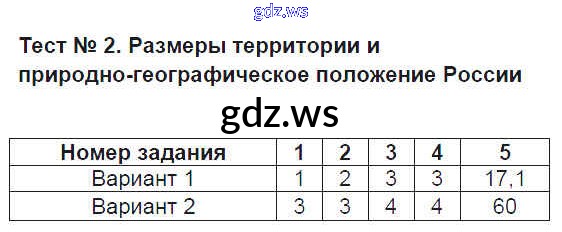 Готовый ответ Тесты - Географии 8 класс Пятунина Тесты УМК ФГОС