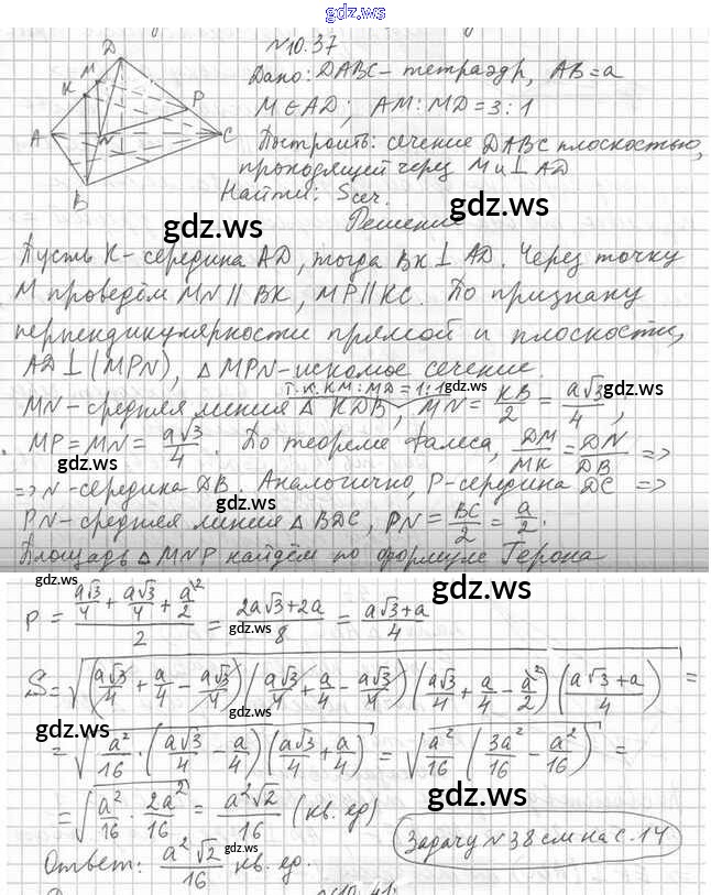 Готовый и полный ответ к §10. Перпендикулярность прямой и плоскости - Геометрии 10 класс Мерзляк Учебник Углубленный уровень Алгоритм успеха ФГОС