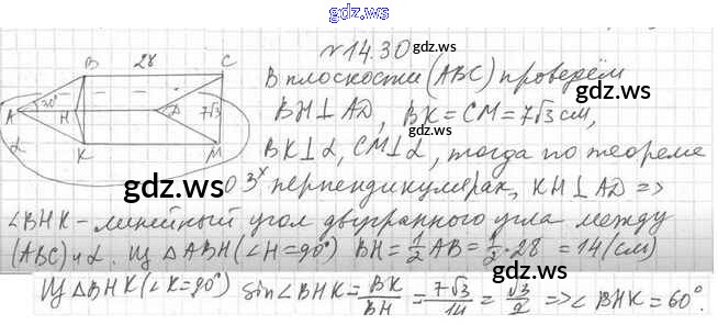 Готовый и полный ответ к §14. Двугранный угол. Угол между двумя плоскостями - Геометрии 10 класс Мерзляк Учебник Углубленный уровень Алгоритм успеха ФГОС