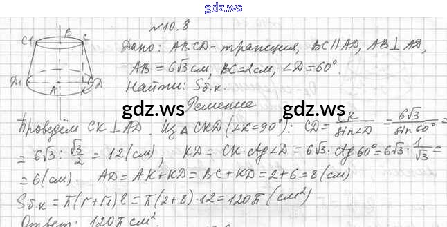 Готовый и полный ответ к §10. Усечённый конус - Геометрии 11 класс Мерзляк Учебник Базовый уровень Алгоритм успеха ФГОС