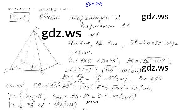 Готовый и полный ответ к СР-17. Варианты Самостоятельные работы - Геометрии 11 класс Ершова Самостоятельные и контрольные работы ФГОС