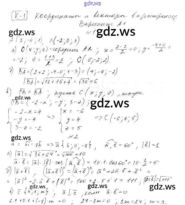 к учебнику Атанасяна 10-11 / контрольная работа / кр-1. вариант / А1