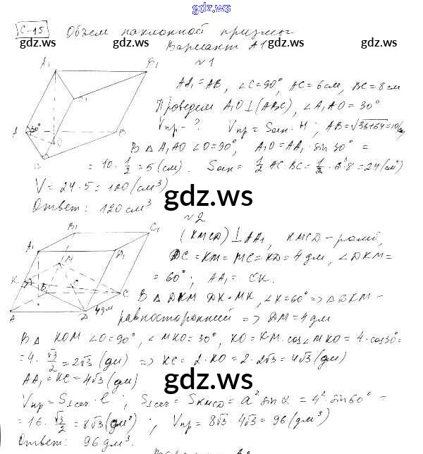 Готовый и полный ответ к СР-15. Варианты Самостоятельные работы - Геометрии 11 класс Ершова Самостоятельные и контрольные работы ФГОС