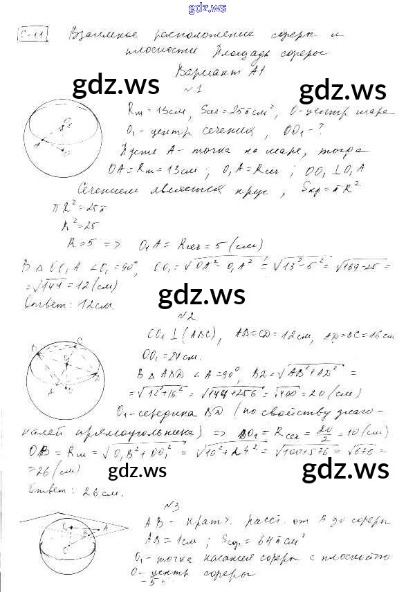 Готовый и полный ответ к СР-11. Варианты Самостоятельные работы - Геометрии 11 класс Ершова Самостоятельные и контрольные работы ФГОС