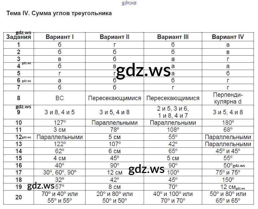 Готовый ответ Темы - Геометрии 7 класс Фарков Тесты УМК ФГОС