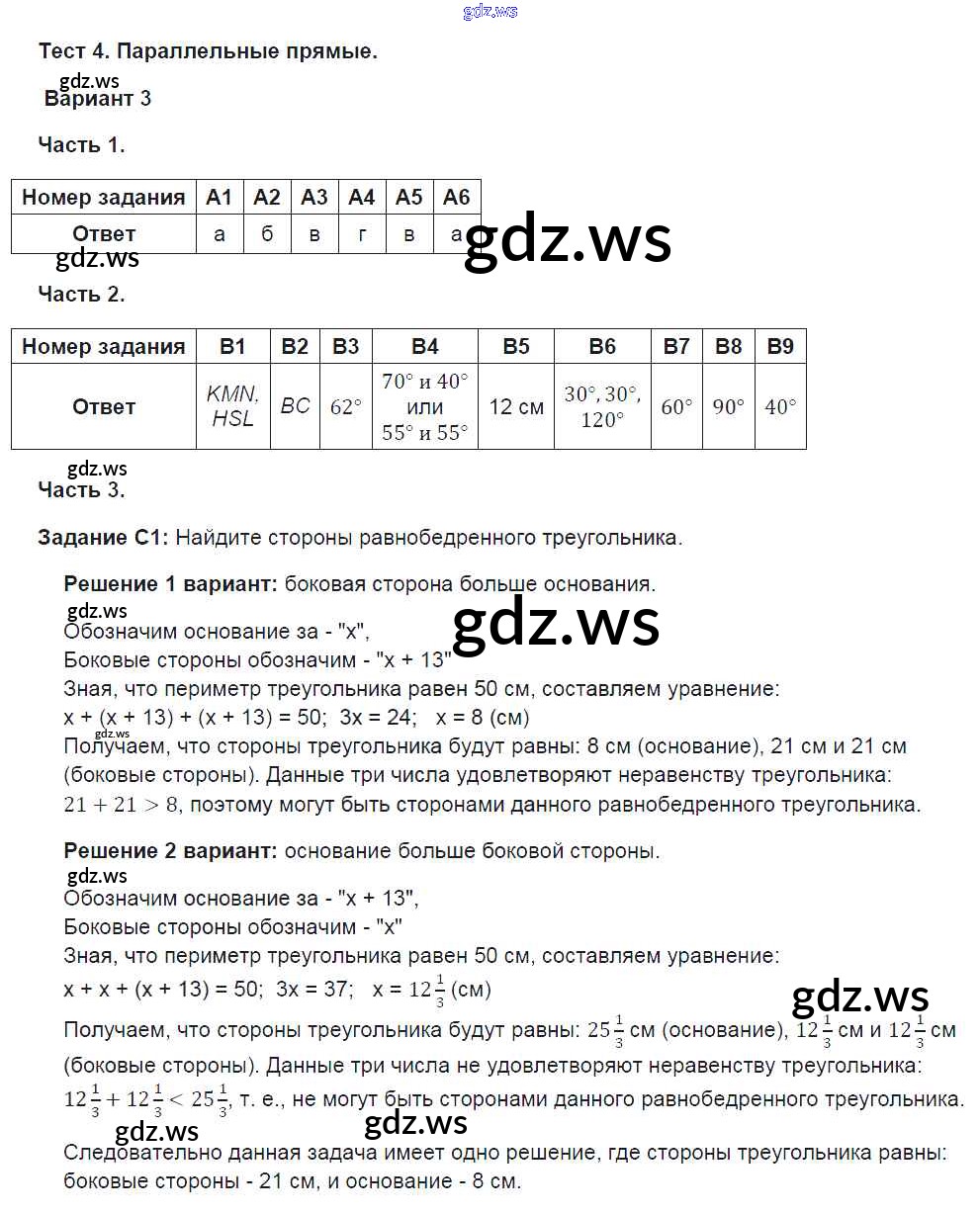 Готовый и полный ответ к Глава 4. Варианты - Геометрии 7 класс Фарков Тесты УМК ФГОС