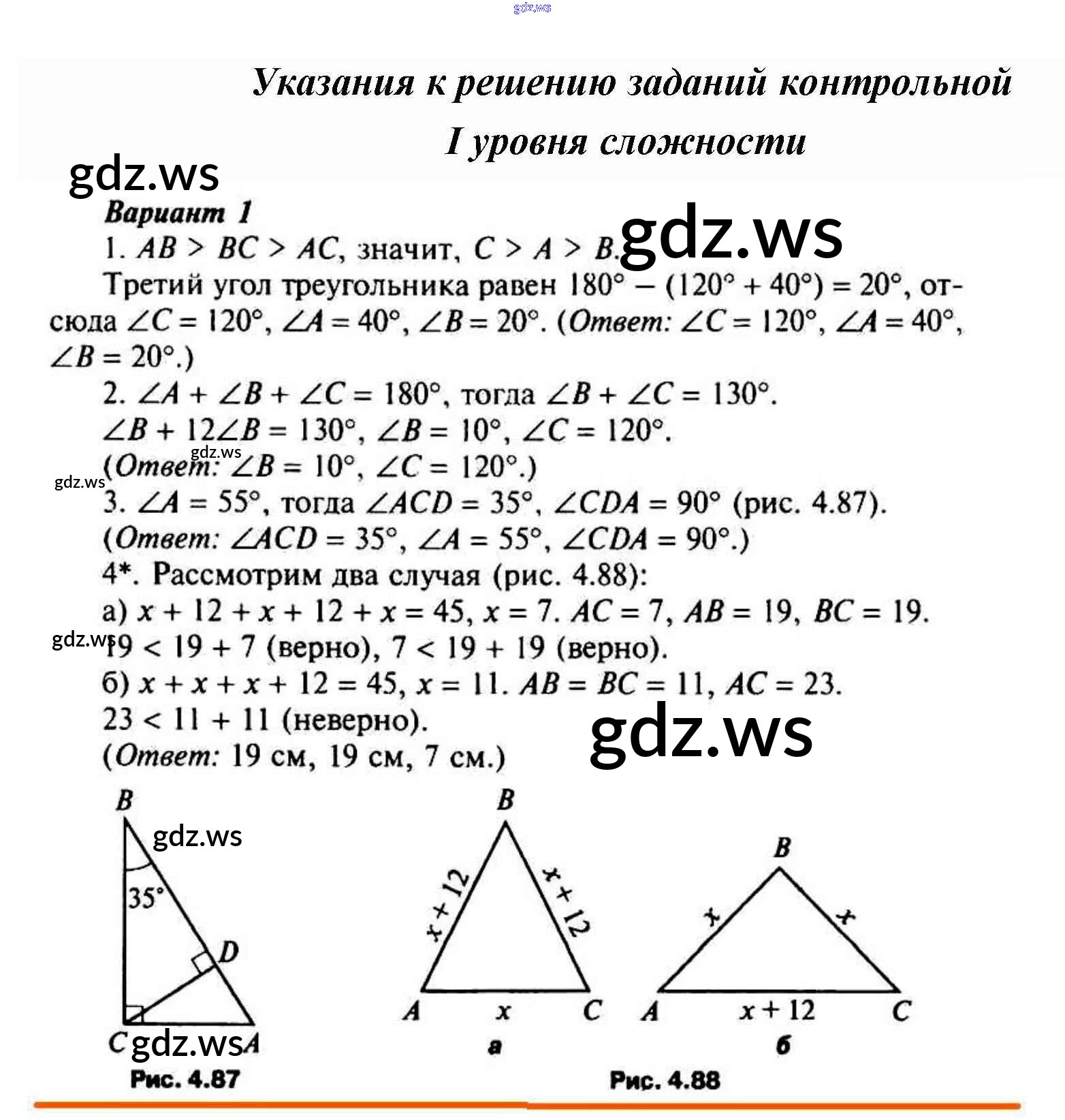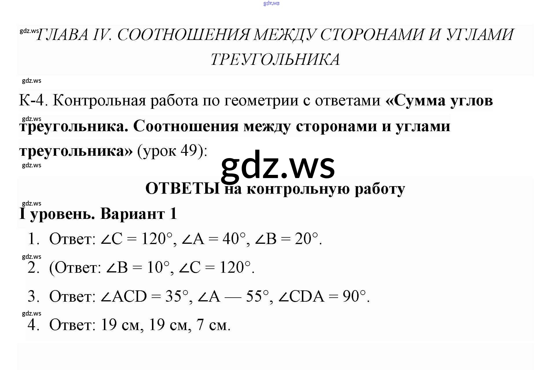 Готовый и полный ответ к Уровень 1 Контрольные работы 4 (Уровни) - Геометрии 7 класс Гаврилова Поурочные разработки ФГОС