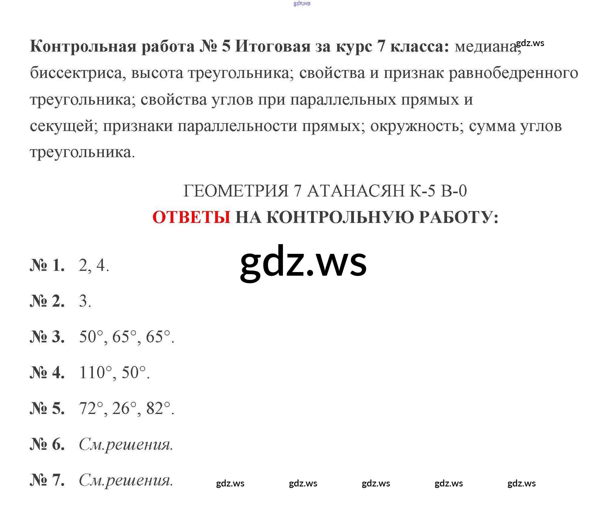 Готовый ответ КР-5. Варианты - Геометрии 7 класс Мельникова Контрольные работы УМК ФГОС