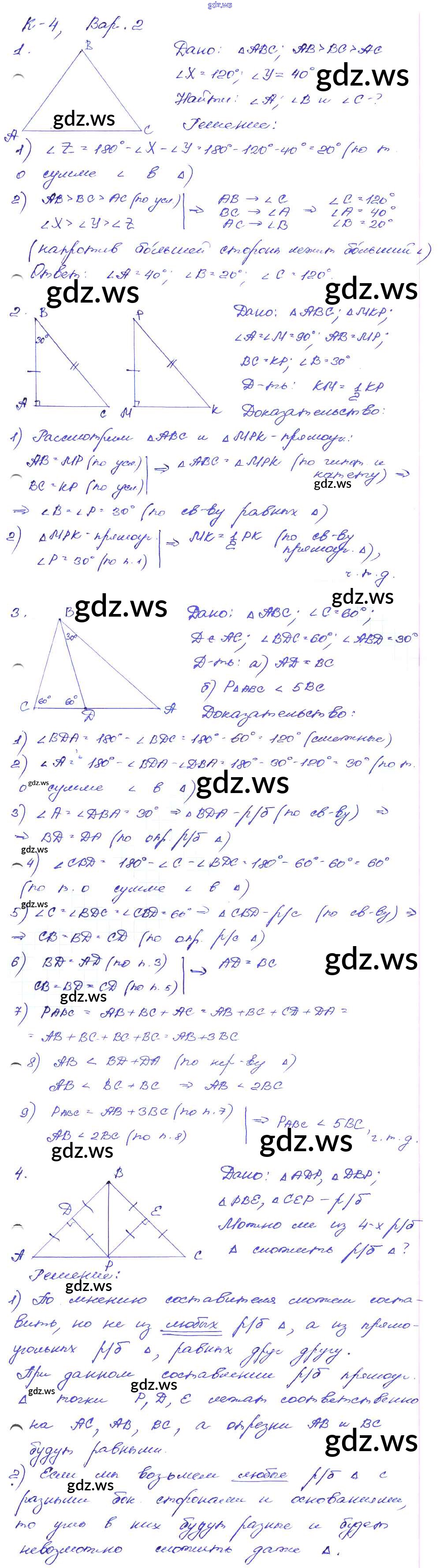 Готовый и полный ответ к КР-4. Варианты Контрольные работы - Геометрии 7 класс Зив Дидактические материалы ФГОС