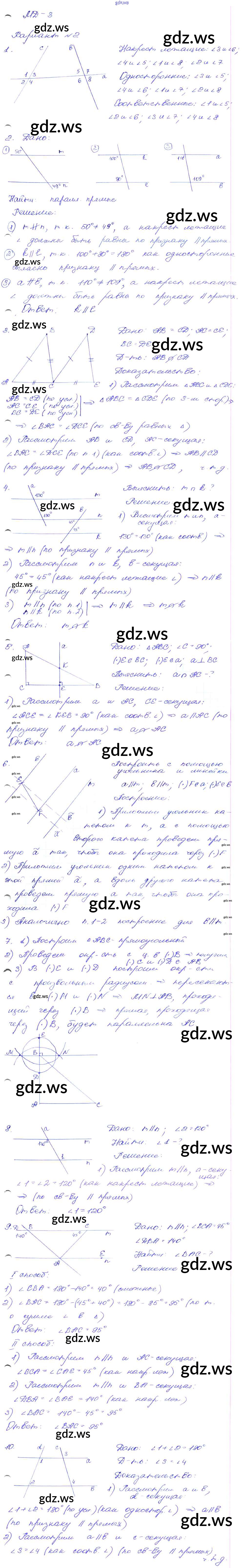 Готовый и полный ответ к МД-3. Варианты Математический диктант - Геометрии 7 класс Зив Дидактические материалы ФГОС