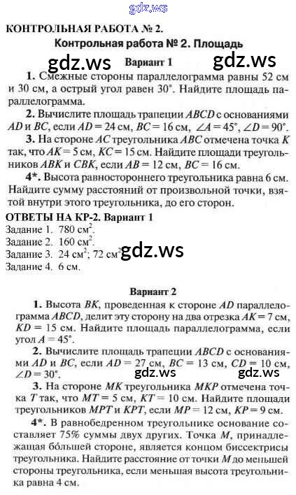 Готовый ответ Контрольные работы - Геометрии 8 класс Гаврилова Контрольно-измерительные материалы (КИМ) ФГОС