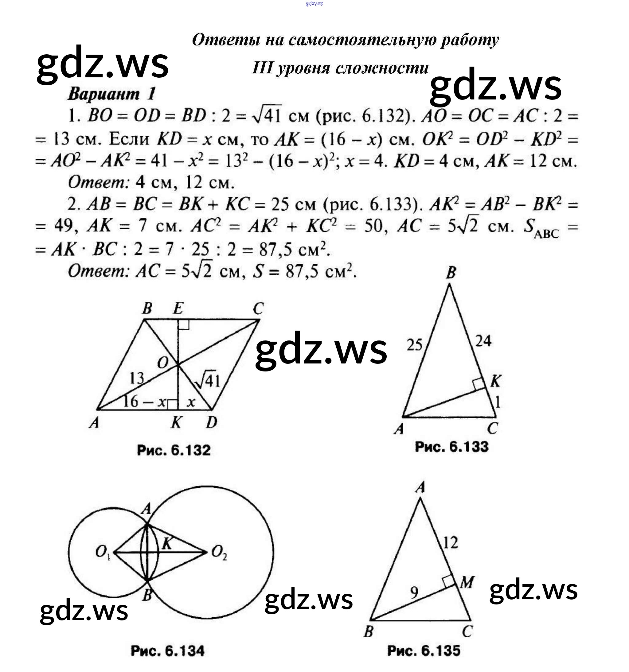 Готовый ответ Уровень сложности 3 Самостоятельная работа 8 - Геометрии 8 класс Гаврилова Поурочные разработки