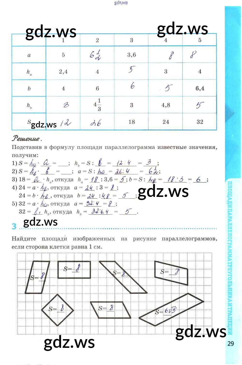 Готовый и полный ответ к Глава VI. Площадь - Геометрии 8 класс Глазков Рабочая тетрадь УМК ФГОС
