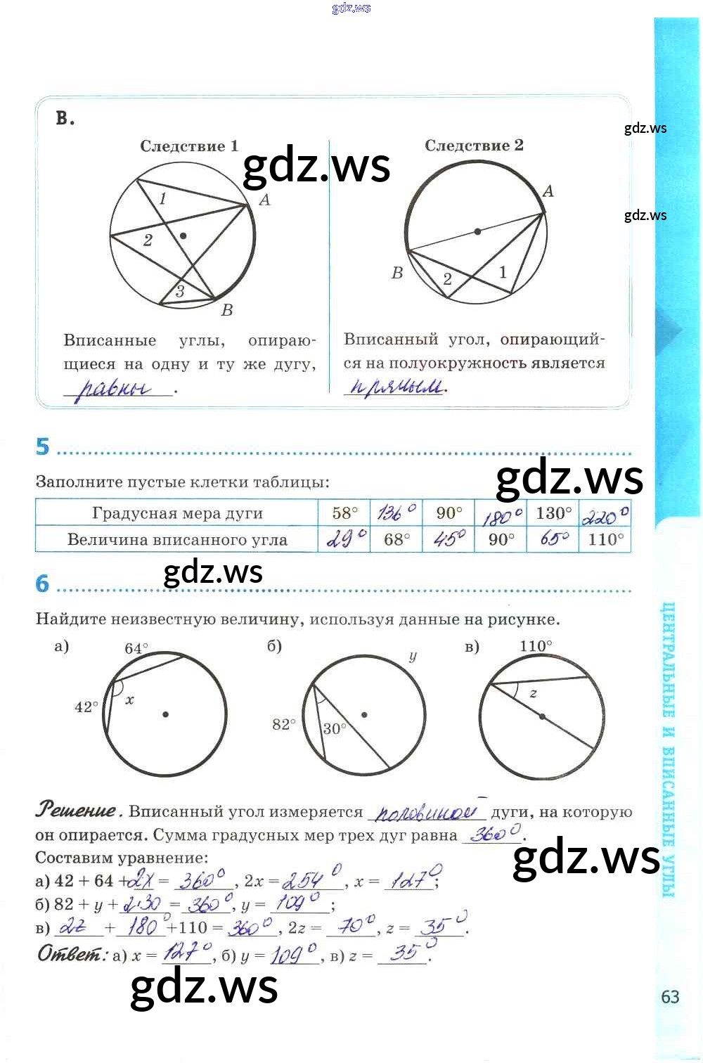Готовый и полный ответ к Глава VIII. Окружность - Геометрии 8 класс Глазков Рабочая тетрадь УМК ФГОС