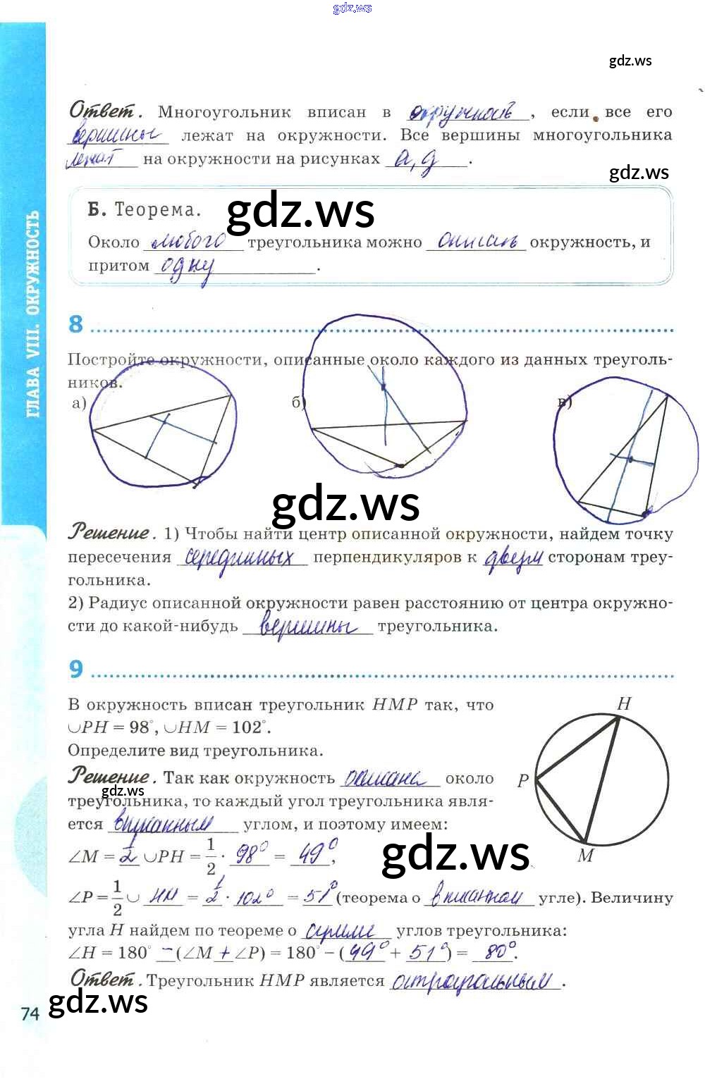 Готовый ответ Глава VIII. Окружность - Геометрии 8 класс Глазков Рабочая тетрадь УМК ФГОС