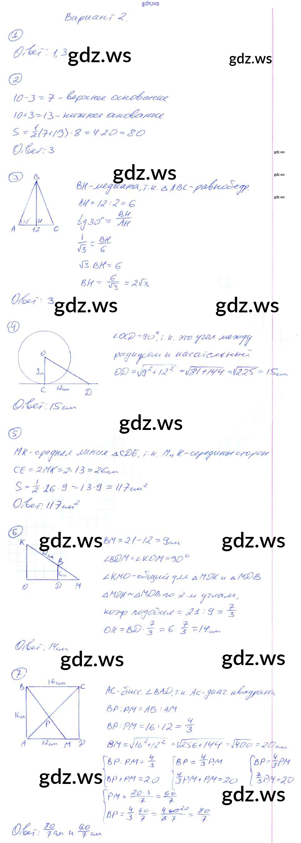 Готовый и полный ответ к КР-5. Итоговая - Геометрии 8 класс Мельникова Контрольные работы УМК ФГОС