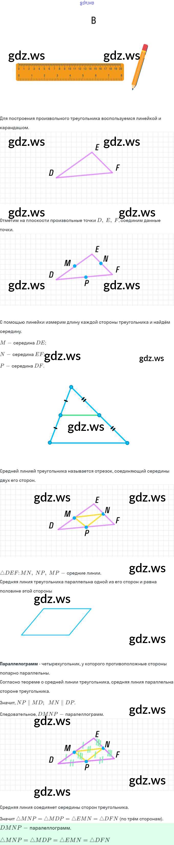 Готовый и полный ответ к §7. Средняя линия треугольника - Геометрии 8 класс Мерзляк Рабочая тетрадь Алгоритм успеха ФГОС