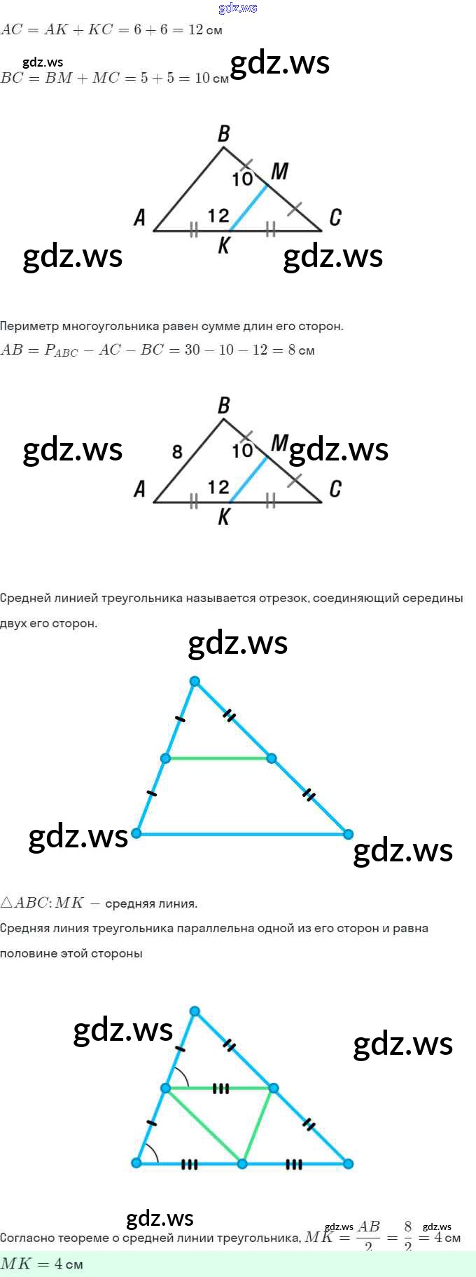 Готовый и полный ответ к §7. Средняя линия треугольника - Геометрии 8 класс Мерзляк Рабочая тетрадь Алгоритм успеха ФГОС