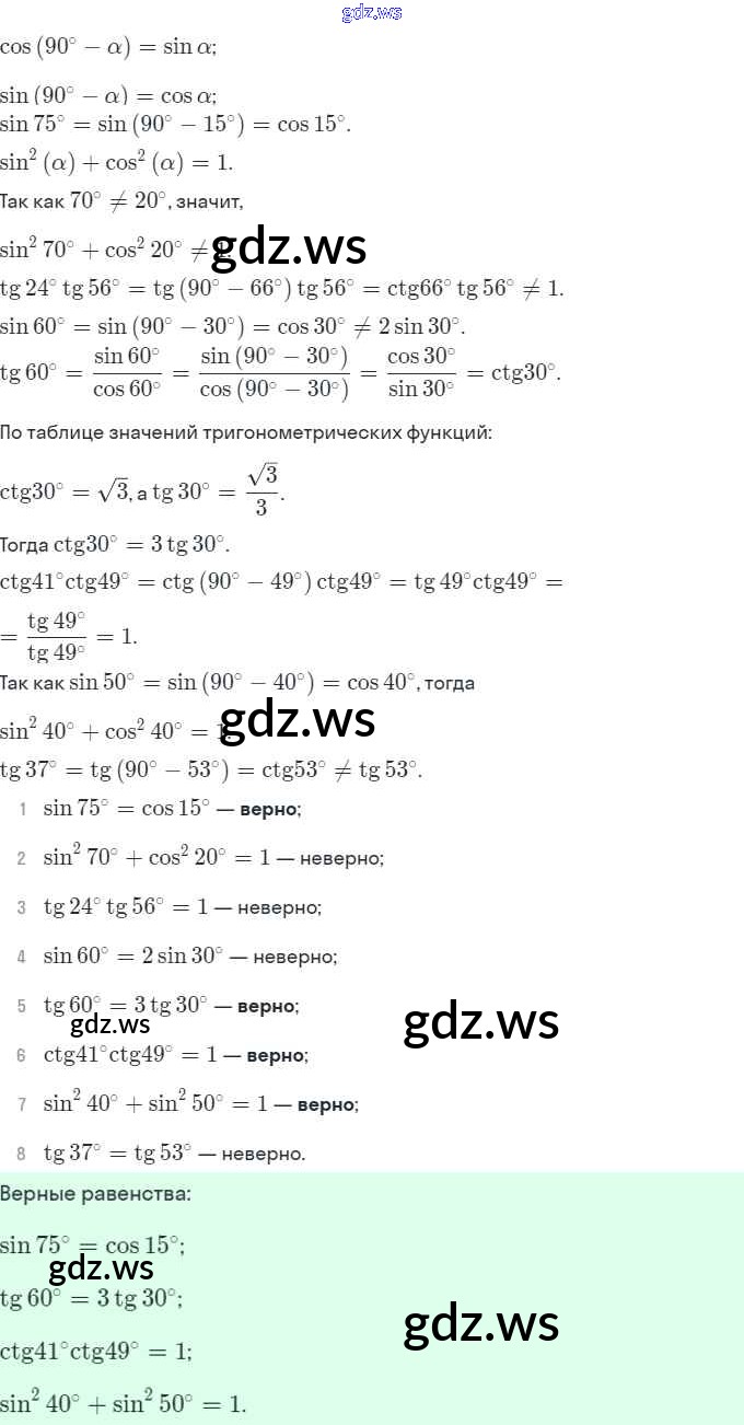 Готовый и полный ответ к §17. Тригонометрические функции острого угла прямоугольного треугольника - Геометрии 8 класс Мерзляк Рабочая тетрадь Алгоритм успеха ФГОС