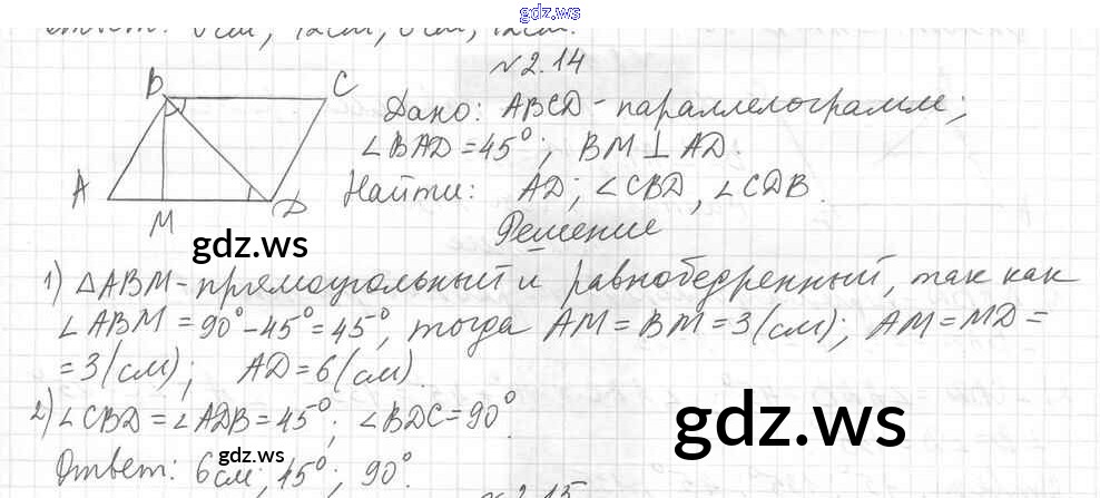 Готовый и полный ответ к § 2. Параллелограмм и его свойства Глава 1. Многоугольники. Четырехугольники - Геометрии 8 класс Мерзляк Учебник Углубленный уровень Алгоритм успеха ФГОС