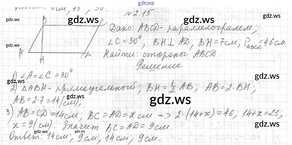 Готовый и полный ответ к § 2. Параллелограмм и его свойства Глава 1. Многоугольники. Четырехугольники - Геометрии 8 класс Мерзляк Учебник Углубленный уровень Алгоритм успеха ФГОС