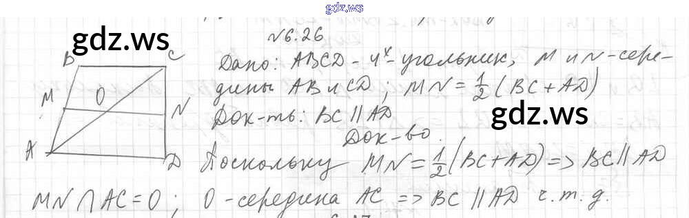 Готовый ответ § 6. Средняя линия треугольника Глава 1. Многоугольники. Четырехугольники - Геометрии 8 класс Мерзляк Учебник Углубленный уровень Алгоритм успеха ФГОС